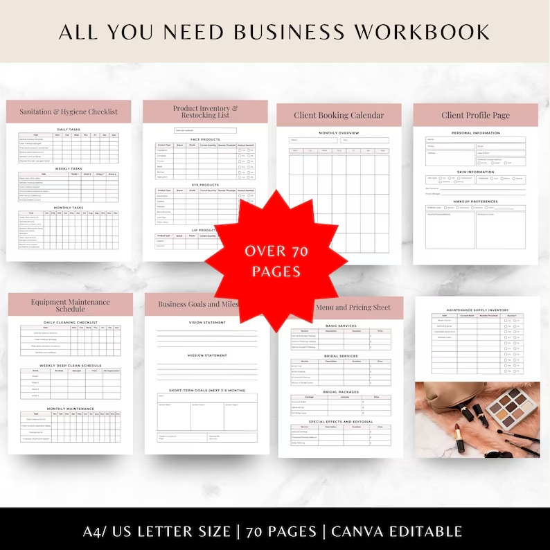 beautician Service Bundle Forms, Makeup Artist Planner, Make-Up Business Organizer, MUA Finance and Management Printable Planner, Editable